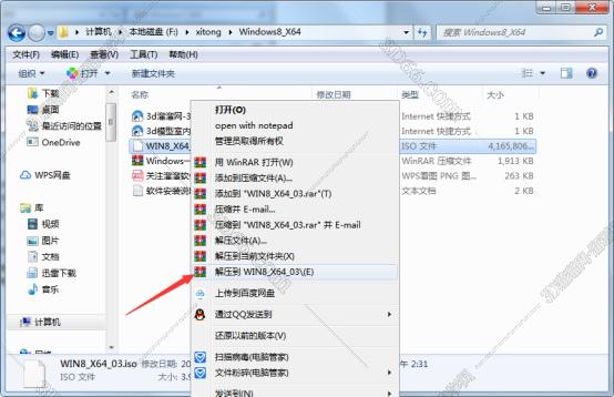 1、下载完成之后,解压Windows 8系统,然后找到里面的iso镜像文件解压(不能放到c盘或者桌面)。