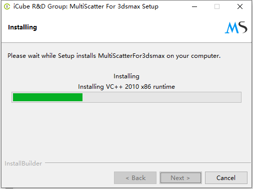 运行安装程序MultiScatterFor3dsmax-1.630.exe,按照提示完成安装过程。