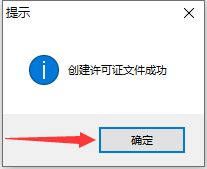 创建许可证文件成功,点击确定