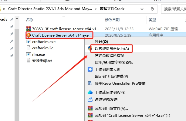 选择Craft License Server x64 v14.exe鼠标右键以管理员身份运行