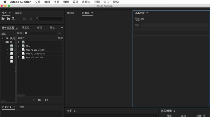 Audition2021mac是一款专业混音、修整和精确编辑音频的软件,提供制作、混合、无论您要录制音乐、电台或配音,都可用于编辑和恢复多轨、波形和光谱内容的音像显示,这两款产品均能满足您的使用需要,创造高品质的音质。并且audition2021版有许多优化和添加,举例来说,ST3(第三方)增效工具和AudioUnit增效工具的扫描仪的速度提高了几倍,根据ITUBS.1770-2响度标准,为广告音量和噪音使用。如果您使用一个有效的会话管理工具,那么您可以更容易地预览和导入您的资产,从而提高工作效率,总体而言,非常适合于广播、后期处理以及视频编辑等行业的用户使用。